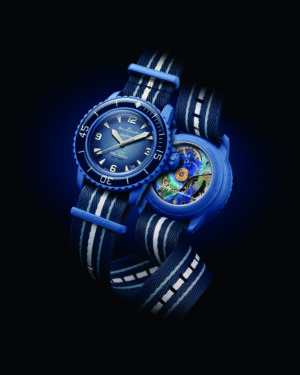 Il movimento è l’automatico SISTEM51 di Swatch – primo e unico movimento meccanico a produzione interamente automatizzata – antimagnetico con spirale Nivachron™, formato da soli 51 componenti e con riserva di carica di 90 ore. A vista, in linea con l’idea che “ il fronte indica l’ora, il retro racconta la storia”, sfoggia sul rotore una serie di molluschi nudibranchi colorati presenti in tutti e cinque gli oceani: il Dendronotus Frondosus sull’ARCTIC OCEAN, il Chromodoris Kuiteri sul PACIFIC OCEAN, ed ancora, l’ATLANTIC OCEAN mostra il Glaucus Atlanticus, l’INDIAN OCEAN il Nembrotha Kubaryana, l’ANTARCTIC OCEAN il Tritoniella Belli. Mentre sui ponti sono raffigurati i relativi oceani, e come espressione dell’impegno per la loro conservazione i cinturini NATO utilizzano materiale riciclato proveniente dalle reti da pesca recuperate dal mare.