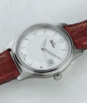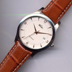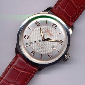 Orologio con cassa in acciaio con fondo trasparente, che mostra il calibro automatico ETA 2824, personalizzato dalla Casa. Il quadrante…