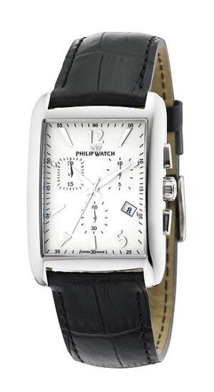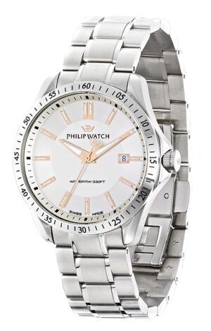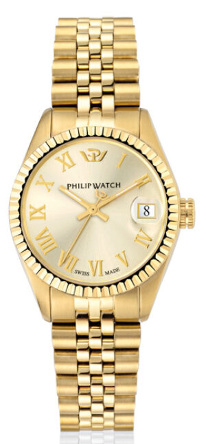 Solo tempo da donna con cassa di 34 mm e bracciale in acciaio lucido e satinato con fibbia déployante. Quadrante…