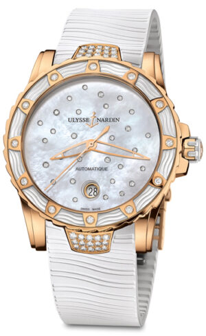 Orologio subacqueo femminile con cassa di 40 millimetri in oro rosa impermeabile 10 atmosfere, ghiera girevole unidirezionale decorata con motivo…