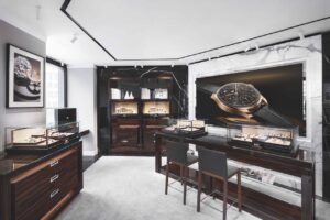 Gli eleganti ambienti della boutique si sviluppano su due piani all’interno di un antico palazzo e su una superficie totale di circa 100 metri quadrati. Caratterizzati da finiture ricercate ma sobrie, con arredi in legno scuro e pareti e pavimenti in marmo bianco, vengono piacevolmente illuminati dalla luce naturale al piano terra grazie a tre grandi vetrine che danno pieno risalto alle prestigiose creazioni della Manifattura di Schaffhausen. In un’atmosfera confortevole, intima e rilassante sarà quindi possibile ammirare i famosi calendari e tourbillon firmati IWC, nonché le novità più recenti delle iconiche collezioni Pilot’s Watches, Portugieser, Ingenieur, Portofino e Aquatimer.