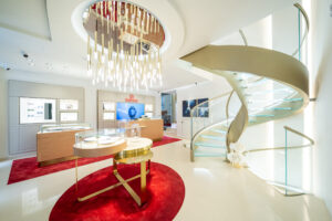 Pensato come un ambiente contemporaneo dove un’atmosfera calda ed elegante pervade gli spazi, il nuovo negozio riflette un alto livello di raffinatezza che accompagna i clienti, mettendoli a proprio agio durante la visione e l’apprezzamento dell’intera gamma di prodotti della Maison. Dai segnatempo Speedmaster, Seamaster, Constellation e De Ville, ai gioielli, fino alla pelletteria e alla collezione di occhiali.