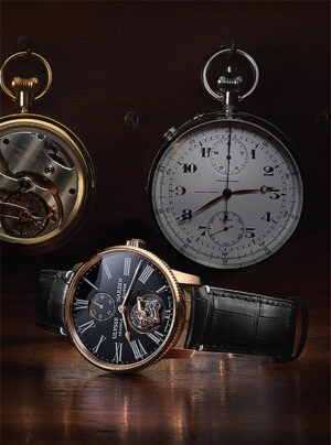 Sebbene la Svizzera non abbia sbocchi sul mare, Ulysse Nardin ha sempre sentito il richiamo dell’affascinante elemento, del quale la Maison ha fatto personale e privilegiato argomento d’espressione. Fondato nel 1846 a Le Locle, il marchio ha consolidato la sua reputazione proprio con i cronometri da marina di precisione: intorno al 1870, infatti, la Manifattura riforniva più di 50 Marine e Compagnie di Marina mercantile di tali strumenti di bordo, ai tempi essenziali quanto il GPS o il sistema radar sulle attuali imbarcazioni. La precisione di questi orologi portatili utilizzati per calcolare la longitudine in mare – circa 0,1 secondi al giorno o meno di 1 minuto all’anno – ha permesso al capitano James Cook di circumnavigare il globo tra il 1768 e il 1771. E quando nel 1905 l’Osservatorio navale di Washington DC lanciò il concorso chiamato “Precision Torpedo Boat Timepieces” per trovare un produttore in grado di fornire ai suoi ufficiali di torpediniere – piccole navi da combattimento veloci e manovrabili – cronometri che fossero affidabili e precisi come quelli delle grandi navi da guerra, fu Ulysse Nardin a ottenere i migliori risultati, e a vincere, diventando poi fornitore ufficiale della Marina americana fino agli anni Cinquanta…